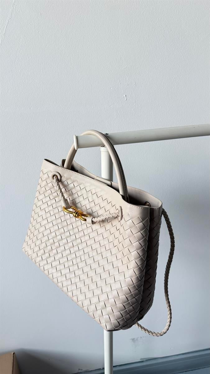 Bej El Örgüsü Gold Toka Detaylı Büyük Boy Çanta