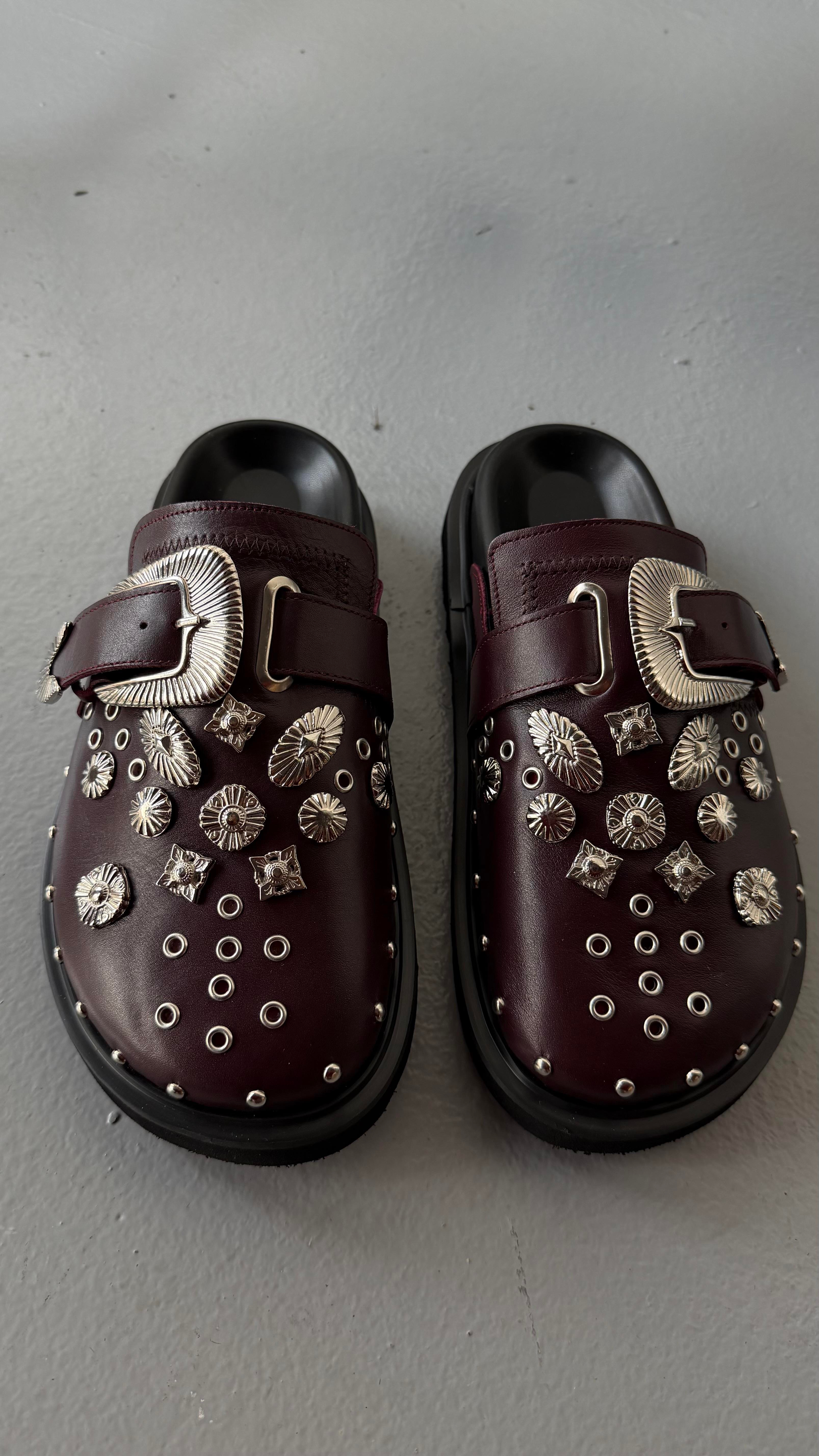 Bordo Cilt Hakiki Deri Kemerli Tokalı Burnu Kapalı Kadın Terlik