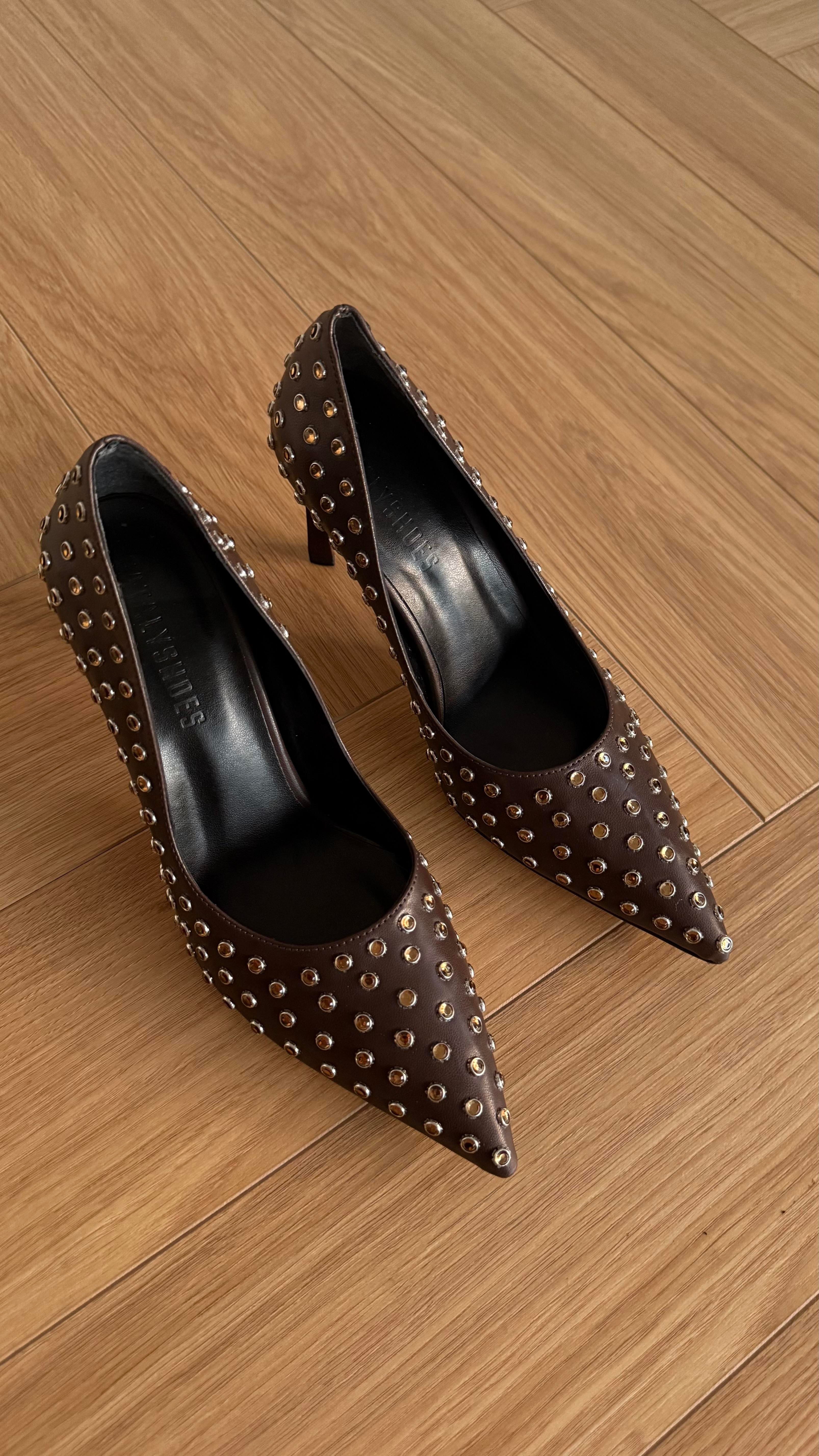 Taşlı Acıkahve Kadın Topuklu Ayakkabı