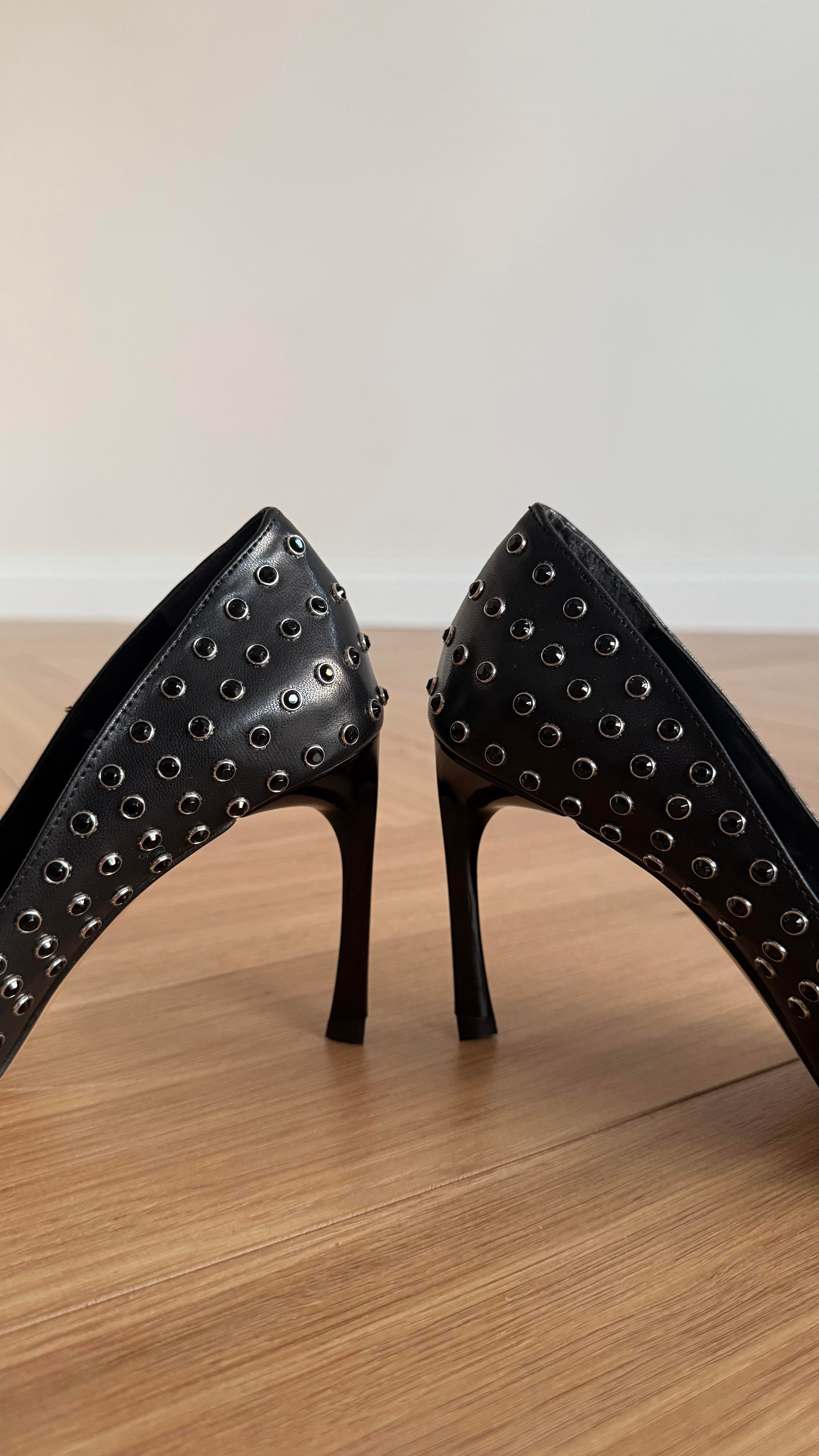 Taşlı Siyah Kadın Topuklu Ayakkabı